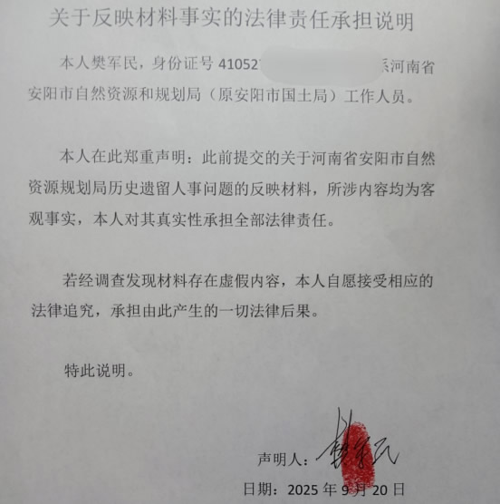 就此事联系安阳市自然资源规划局魏冬局长,魏局长表示知道此事,这个是个历史遗留问题,会尽力解决。我们不知这是搪塞还是会解决?樊军民的维权长征还在继续,而这场关于“编制”与“尊严”的博弈,终将检验地方政府的责任与担当。